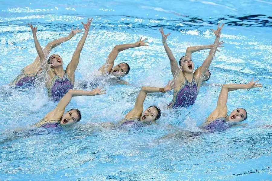 中国花样游泳队在新加坡游泳世锦赛上展现强大统治力,徐汇妍在女子单人技术自选决赛中为中国队摘得首金后,由冯雨、常昊等八名队员组成的集体项目队伍再以348.4779分的高分力压日本队13.7547分,强势夺得集体自由自选金牌。